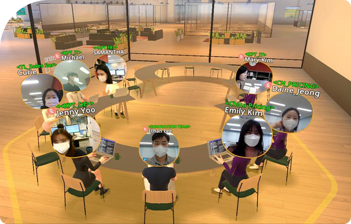 실제로는 비대면이지만 가상 오피스를 통해 대화하고 소통하며